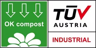 The OK Compost INDUSTRIAL is suitable for biodegradable products used in industrial environments such as large composting sites. The label requires products to decompose at least 90 percent within 12 weeks under industrial composting conditions.